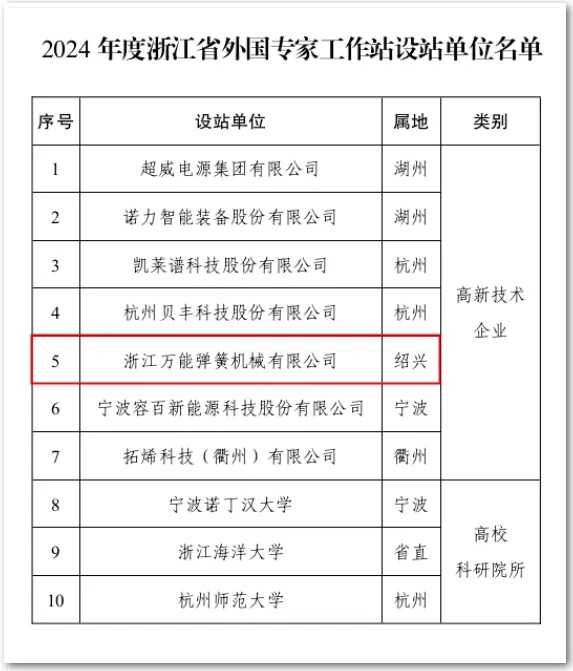 2024년, Zhejiang Universal Spring Machinery Co., Ltd.는 소흥시에서 선정된 유일한 기업으로 다시 한번 영예를 안았습니다. 이번 성과는 회사의 기술 혁신과 국제 개발 전략을 확인할 뿐만 아니라 글로벌 경쟁력의 새로운 단계를 의미합니다.
