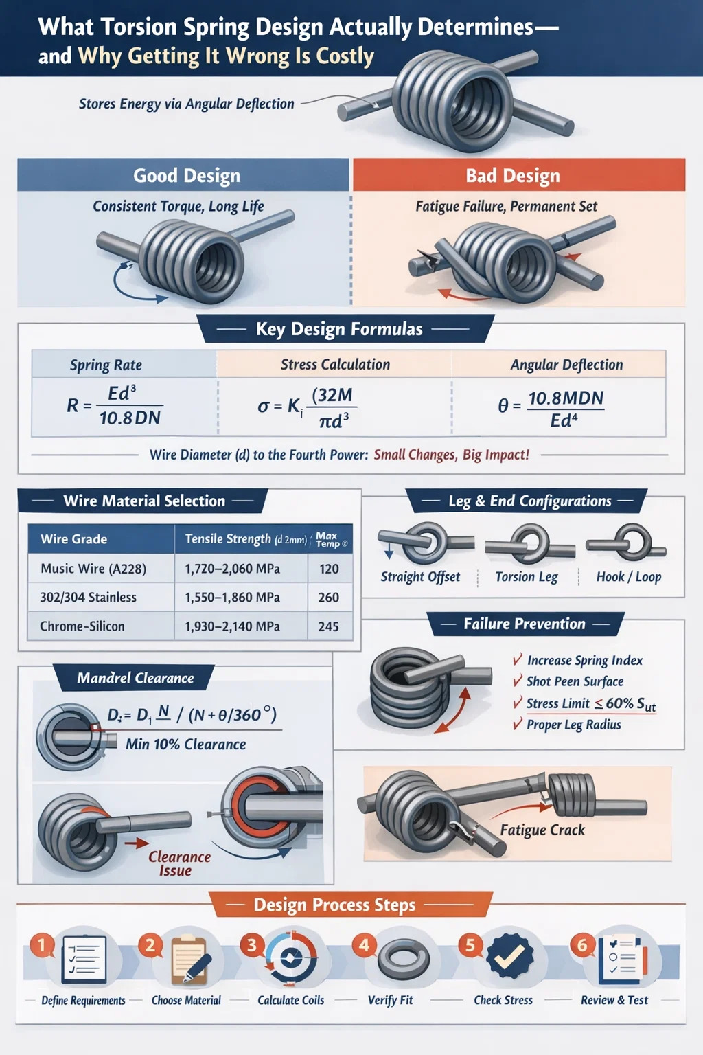 토션 스프링 설계는 잘 확립된 일련의 기계 방정식에 의존합니다. 이를 이해하는 것은 선택 사항이 아닙니다. 스프링이 작동 수명을 유지하는지 아니면 처음 수천 주기 내에 고장이 나는지 여부가 결정됩니다.